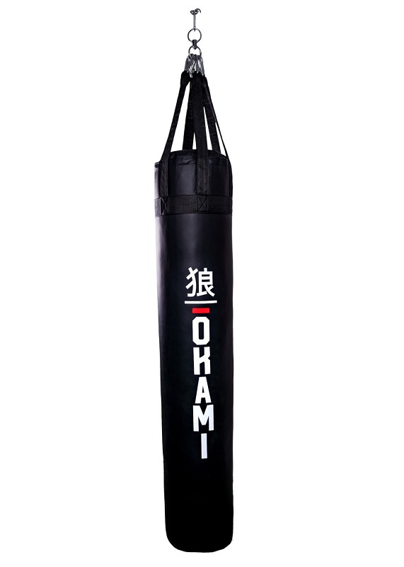 An diesem Heavy Duty Thaiboxsack der Okami Impact Serie können Box- Kickbox und Thaiboxcombos, inklusive Low-Kick, trainiert werden. Er wurde für den professionellen Einsatz in Gyms entwickelt, eignet sich natürlich auch für das Training zu Hause. Herkömmliche Boxsäcke werden mit einer Kette an der Decke befestigt, teilweise sind die Ketten lediglich mit einer 4-Punkt Aufhängung am Boxsack befestigt. Diese Ketten reiben bei jeder Bewegung am Material des Boxsackes und sind laut, was gerade beim Einsatz zu Hause, zum Beispiel von den Nachbarn als störend empfunden werden kann. Die Boxsäcke der Okami Impact Serie verfügen über eine Low-Noise 6 Punkt Aufhängung aus verstärkten Nylon. Mit Hilfe dieser innovativen Aufhängung kann die Gesamtlänge inklusive Aufhängung um bis zu 3 Stufen von eweils ca. 8cm angepasst werden*.