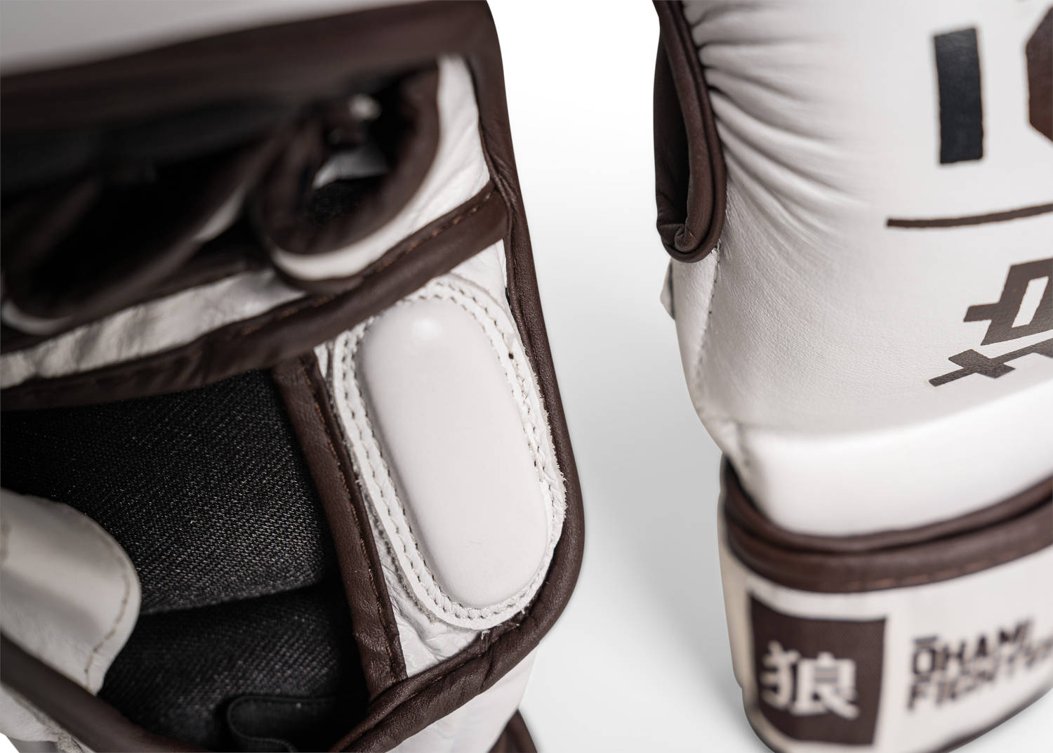 Dank seiner anatomisch optimierten Passform sitzt der Handschuh perfekt an der Hand und bietet dem Trainingspartner oder Gegner, im Gegensatz zu herkömmlichen MMA Handschuhen, bei geballter Faust keine Griffmöglichkeit an der Handkante. Handschuhe der Hi-Pro Serie verfügen über eine zusätzliche Polsterung an der Handkante, einem gepolsterten Daumen und bieten den Athleten Schutz bei Hammerfist Techniken oder Handkantenschlägen. Wer auf hohem Niveau im MMA Sparren will, ohne sich und seine Partner unnötigen Verletzungsgefahren auszusetzen oder eine Karriere als Shooter starten will, sollte sich für den MMA Hi Pro Sparring Glove von Okami entscheiden!